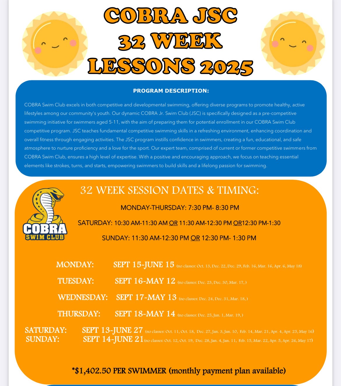 COBRA Junior Swim Club Program Details